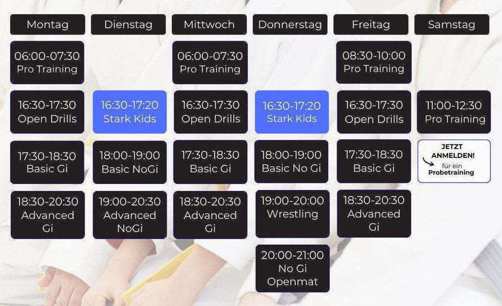 Für ein kostenloses Probetraining in den Basic oder Advanced Klassen kannst du dich entweder über unsere App MAAT anmelden oder uns eine Nachricht über Instagram oder per E-Mail schreiben.